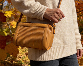 Pierre Cardin Leather Pleated Design Crossbody Bag in Apricot