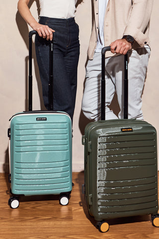Pierre Cardin Moss Hard Shell MEDIUM and CABIN Bundle 2-Piece Set + Assorted Luggage Tag