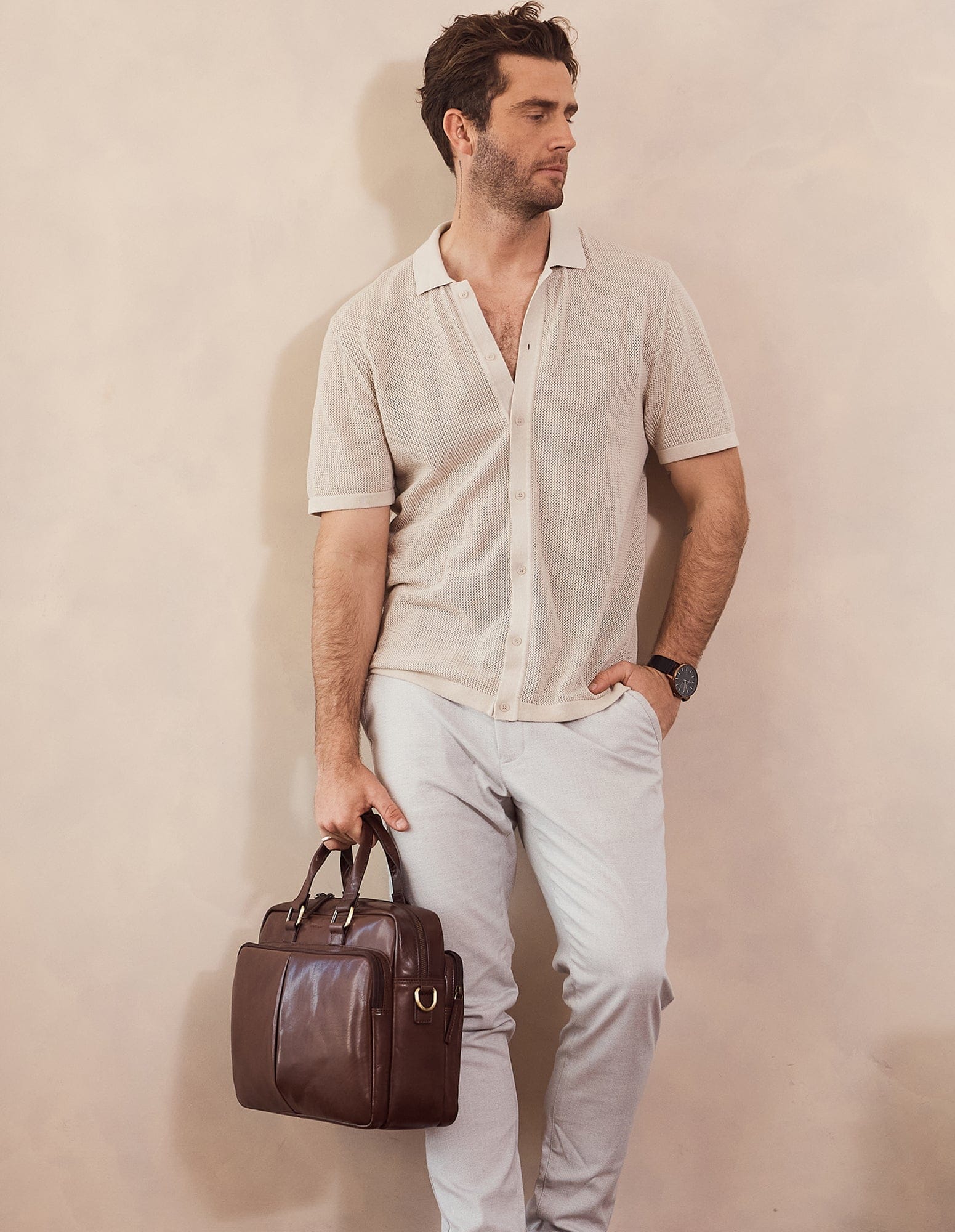 Pierre Cardin Men's Rustic Business Computer Bag in Oak