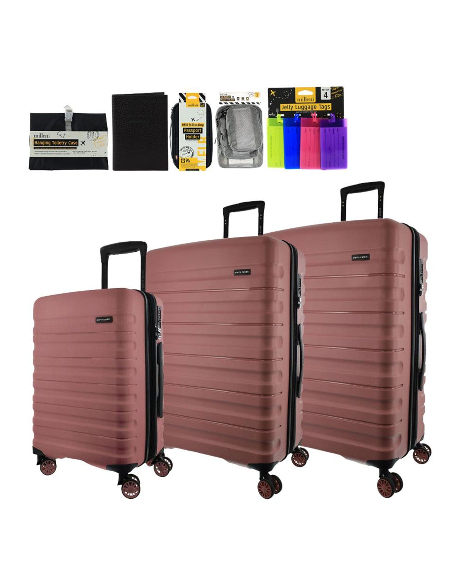 Pierre Cardin 3-piece set of Hard Case Luggage in Rose with Travel Essentials kit