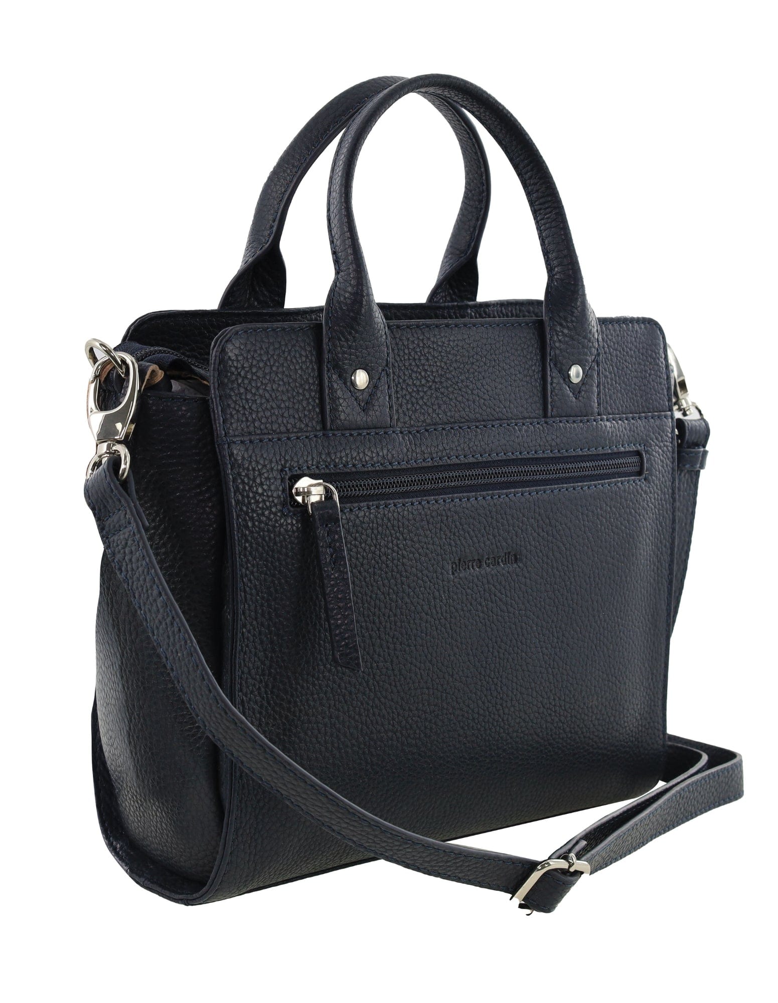 - Pierre Cardin logo emblem in silver-tone hardware