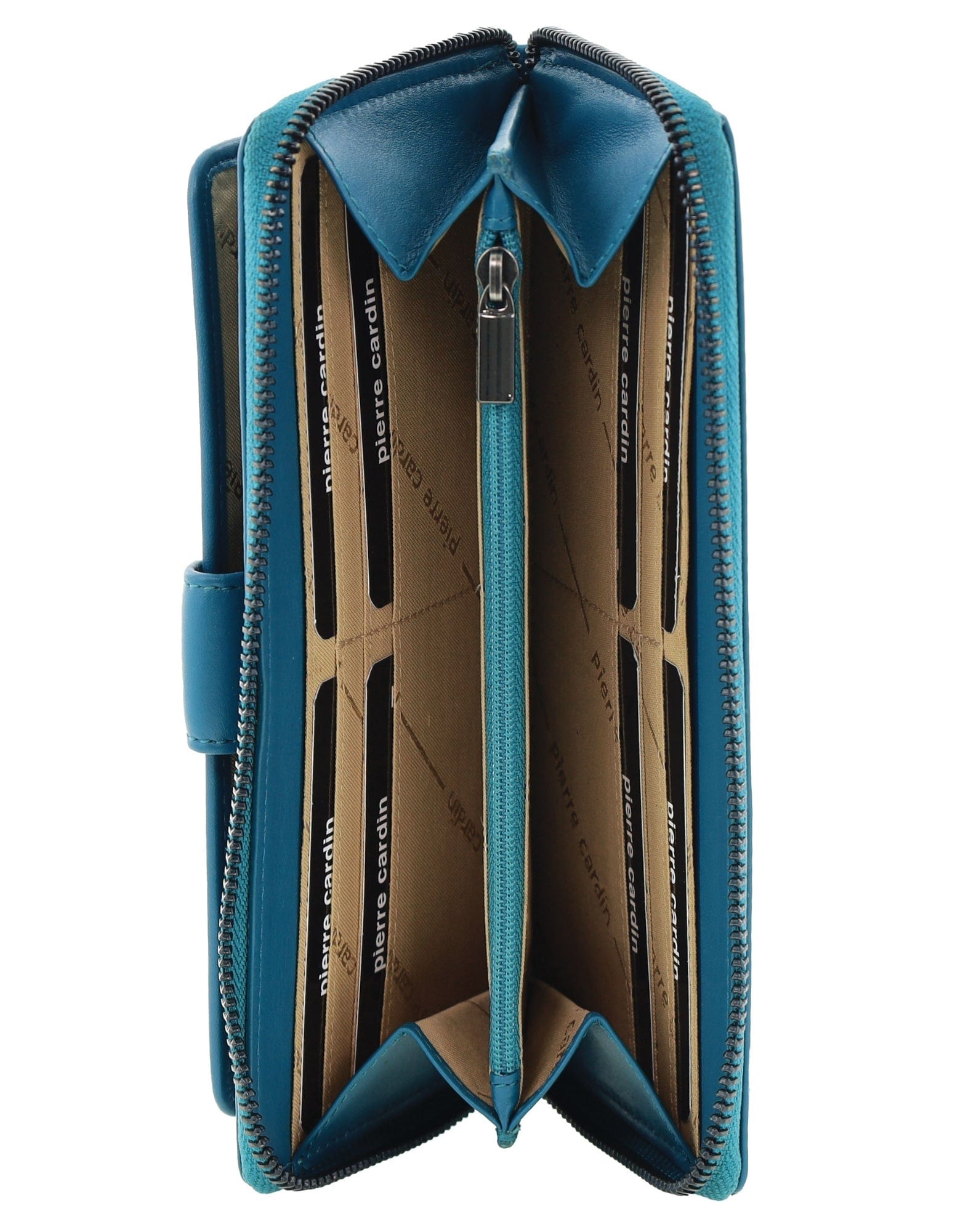 Pierre Cardin Women's Leather Zip around wallet w/ Wristlet in Turquoise