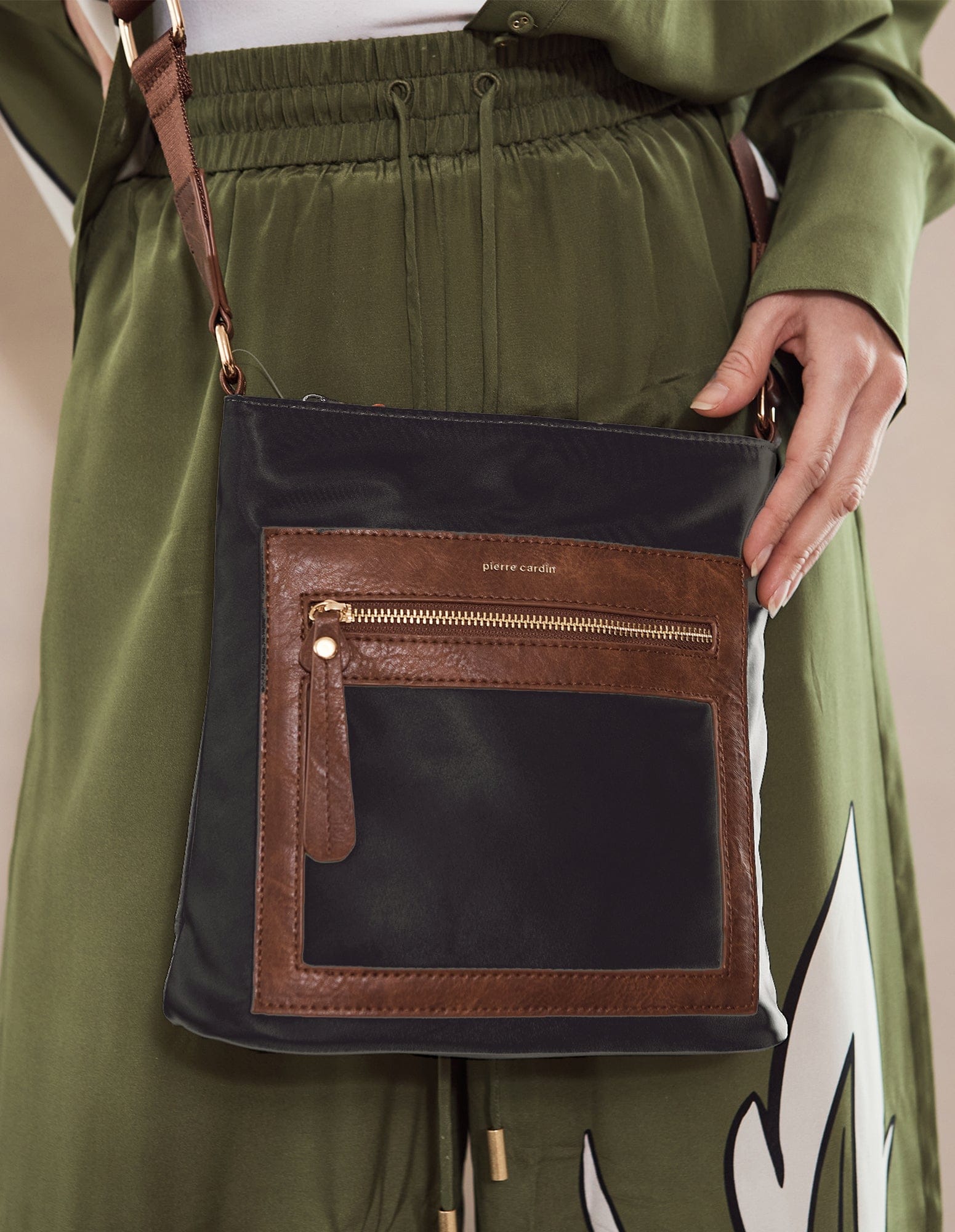 Pierre Cardin RFID Lightweight Nylon Crossbody Bag in Black