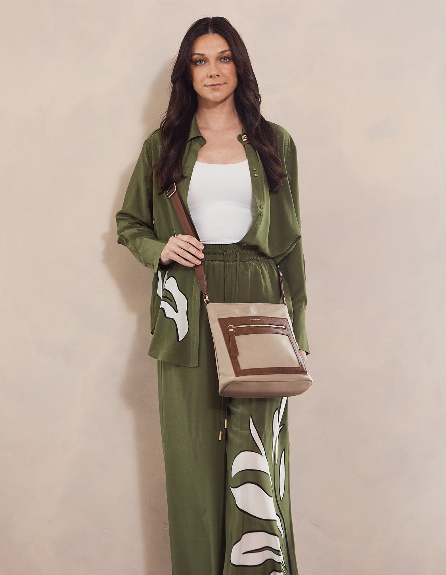 - Elegant gold-tone hardware