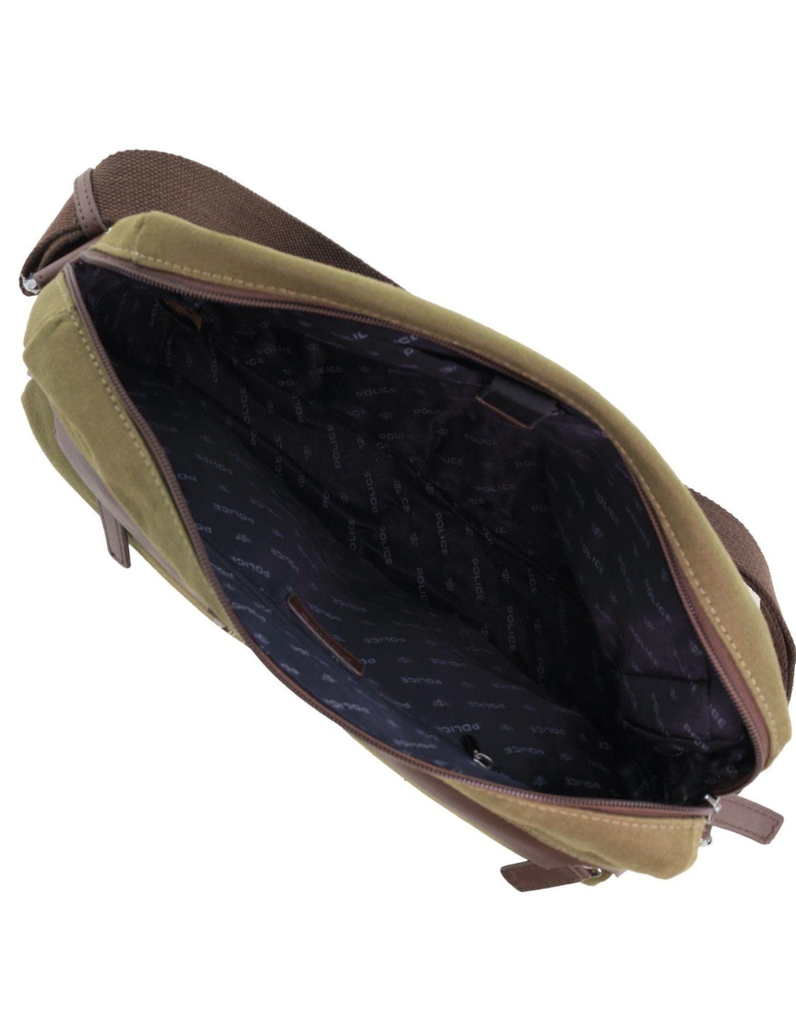Police Rustic Canvas Messenger Business Bag in Dark Olive