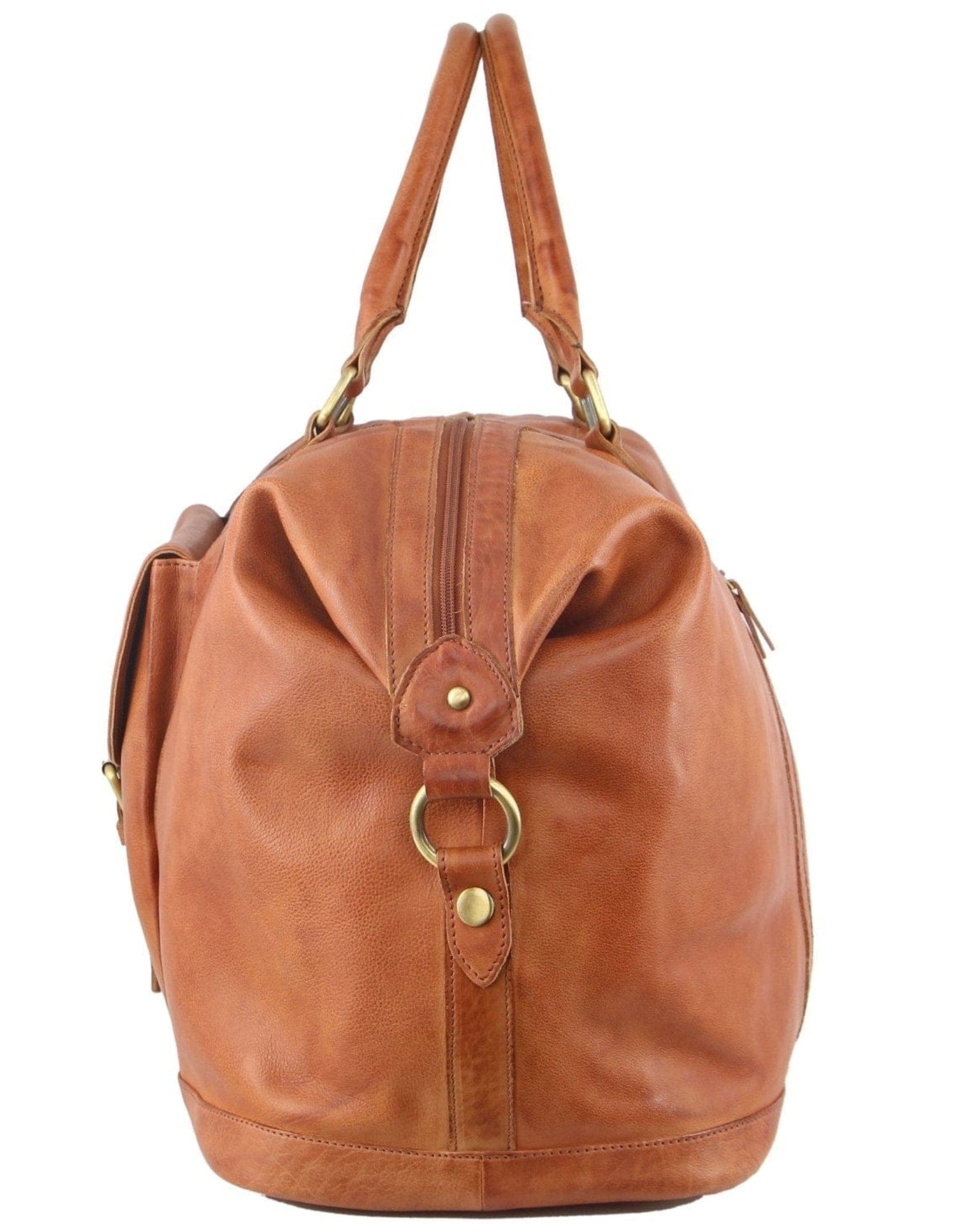 Pierre Cardin Rustic Leather Business/Overnight Bag in Cognac