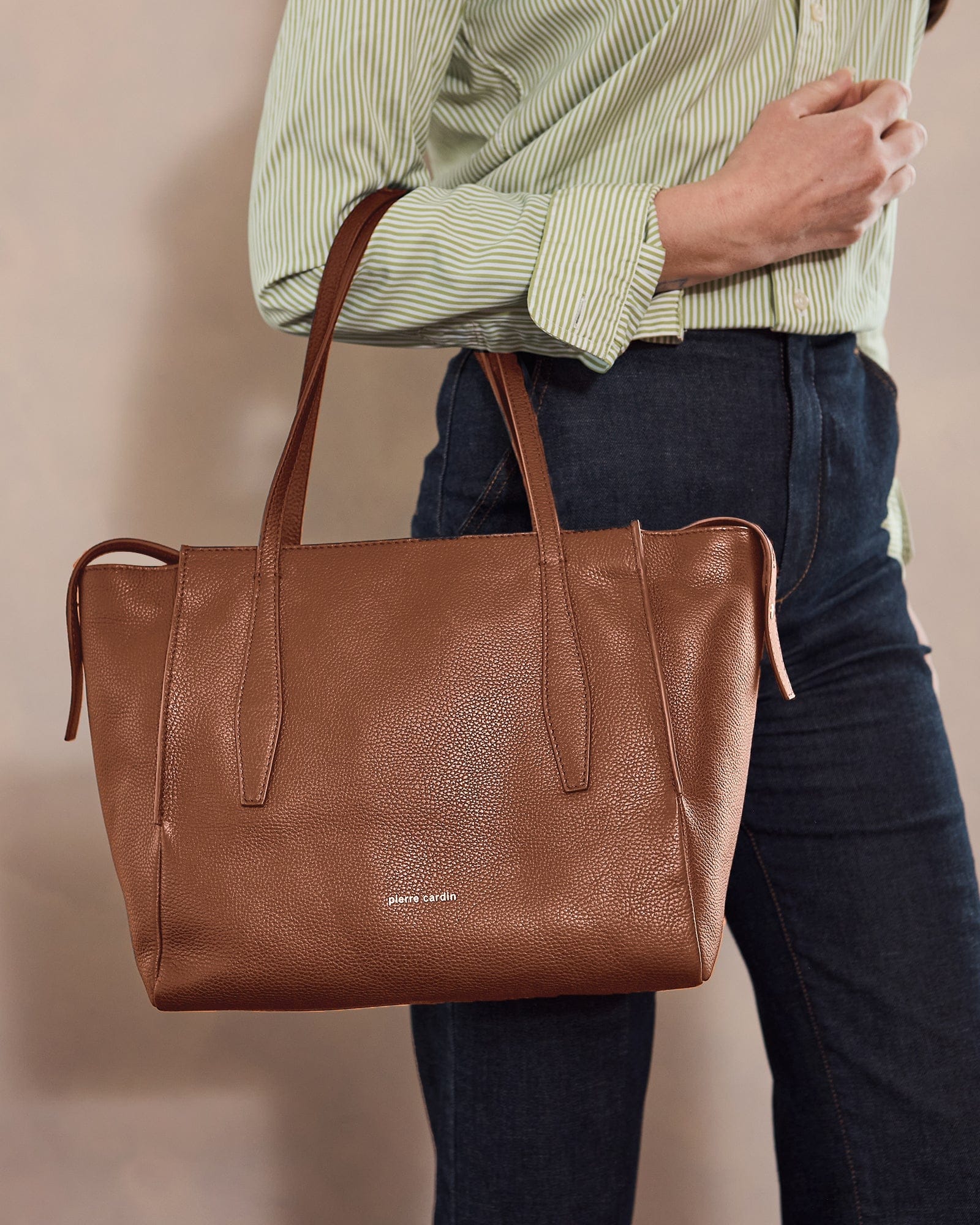 Pierre Cardin Ladies Leather Shopper Tote in Tan